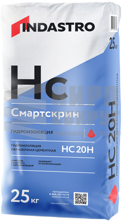 Обмазочная гидроизоляция Смартскрин HC 20H – готовая к применению сухая смесь изготовленная на основе цемента и модифицирующих добавок. Гидроизоляционный материал экологически безопасен, не содержит вредных примесей, оказывающих отрицательное воздействие на здоровье человека. Соответствует действующим на территории Российской Федерации гигиеническим нормам. Продукт изготовлен в соответствии с ТУ производителя из экологически чистого сырья. Преимущества: - Атмосферостойкая - Выдерживает высокие механические нагрузки - Устойчива к воздействию солей - Возможен контакт с питьевой водой
